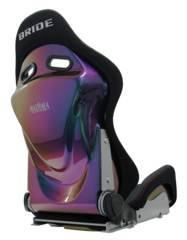 You dont see a lot of “collabs” in the auto aftermarket but here is one of the few that got my attention. First you have a Bride STRADIA “Hybrid” seat. They refer to it as a hybrid because it has a racing bucket shape but its reclinable. Normally its a black cloth inner and a gloss black shell outer but in this case you can get it with Maziora’s (Famous body shop/paint mixer from Japan) “Andromeda” paint scheme.