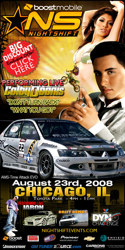 For anyone in the Chicago area, NightShift comes to town on Saturday August 23. See the Valvoline Dyno Challenge, Stunt Bikes, Drift Demos, and the Boost Mobile Freestyle expo.