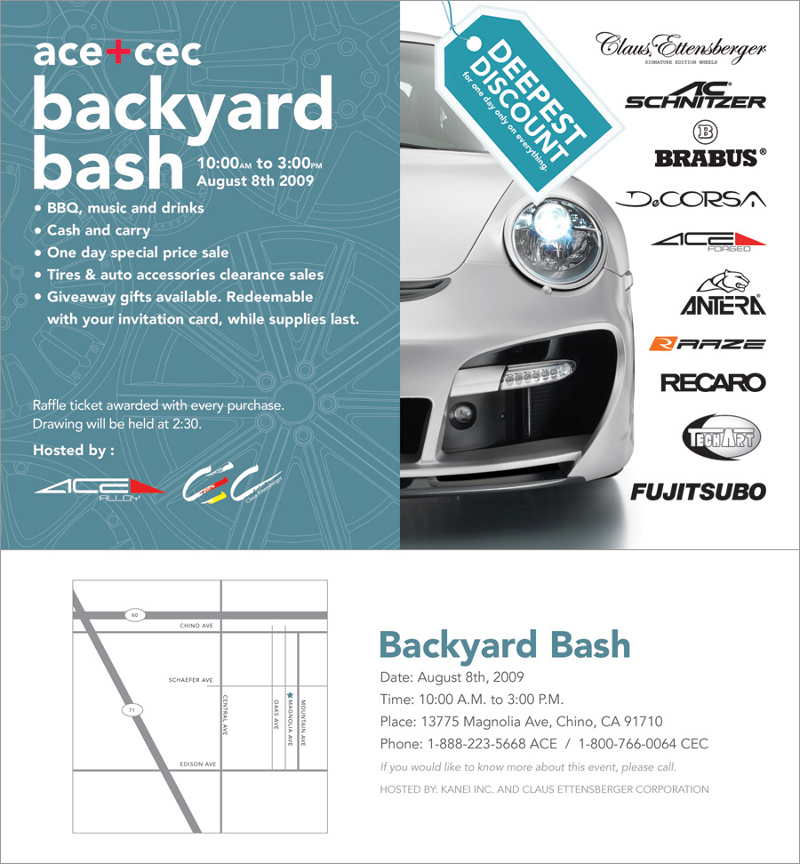 If you’re in the market for some fresh goods for your BMW, Porsche, Audi, Mercedes, or Exotic then I suggest you make plans to go to CEC’s Summer Sale & Backyard Bash this Saturday (August 8th). They’ll have deep discounts on almost all the brands they carry including: Brabus, AC Schnitzer, Antera, ACE Forged, and TechArt. They’ll also have BBQ, music, and drinks. Sounds like a party to me!