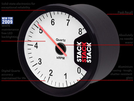 When most people hear “Stack” they think of the high-end professional level digital display dashboards in race cars and in some cases logic defying show cars. However, just as the name suggests the ST200 Clubman Tachometer was created specifically for the club racer who wants some high end equipment without having to buy a full on pro unit. Besides the quality this unit just looks FRESH. It has a simple clean design with the timeless stack logo. Perfecto!