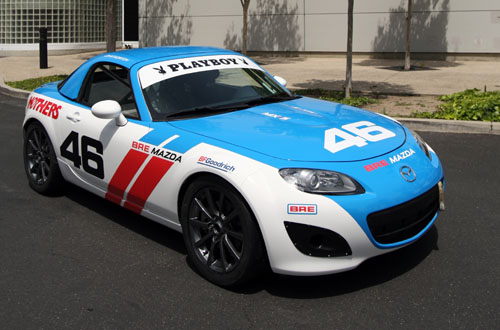 Each year, a racing legend is honored at the Mitty — for 2010, that honored legend is Peter Brock of Brock Racing Enterprises, aka BRE, fame. At this point, it’s not clear if the idea came from Mazda, from Classic Motorsports, HSR, a BRE fan, or elsewhere, but someone simply said, “Wouldn’t it be cool to have a BRE MX-5 in the Playboy race to honor Pete?”