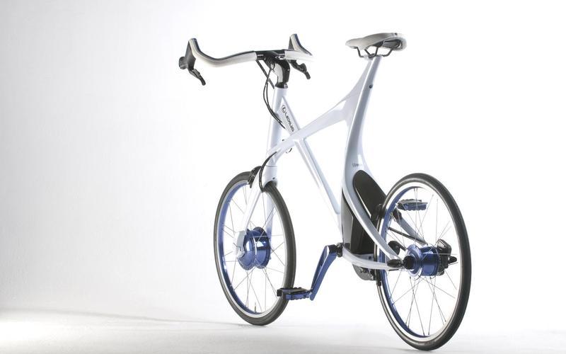 The Lexus Hybrid Bicycle has all-wheel drive, by means of a belt system. It is equipped with an electric eight-speed Shimano internal gear system, which references the sophisticated eight-speed shift-by-wire automatic transmission of Lexus’s LS 600h limousine. The carbon fibre construction shares the same light-but-strong composite materials technology that was used on Valentino Rossi’s MotoGP-winning motorcycle.