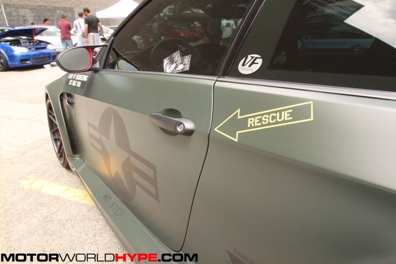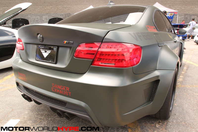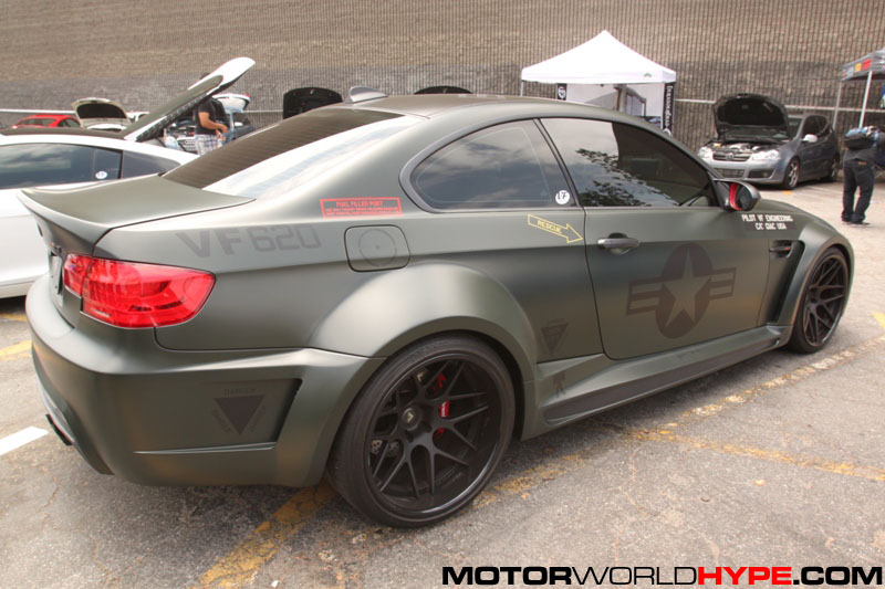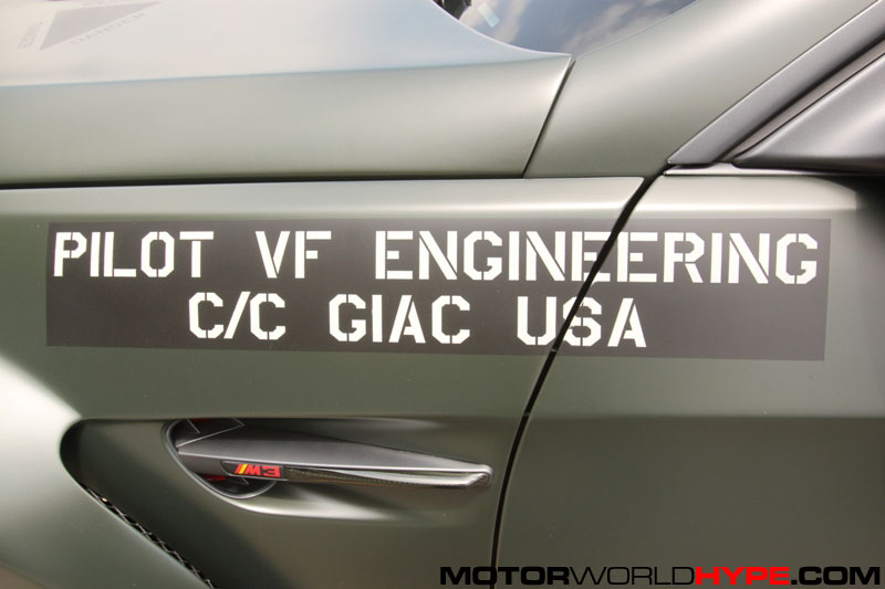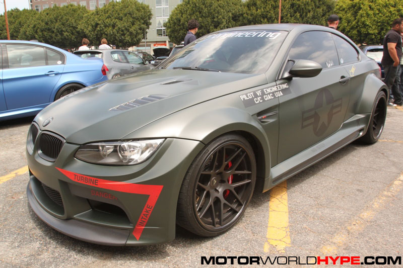 After the participants of the Targa Trophy took off from the starting line in Hollywood last weekend I took a stroll across the street to check out the So Cal Euro car meet. There was a ton of nice examples but what really stopped me in my tracks was this E92 M3 with the Vorsteiner GTRS3 widebody kit built by VF Engineering, complete with an Air Force theme and flat green vinyl wrap! This was easily the freshest car at the meet, and there was a Porsche Carerra GT there!