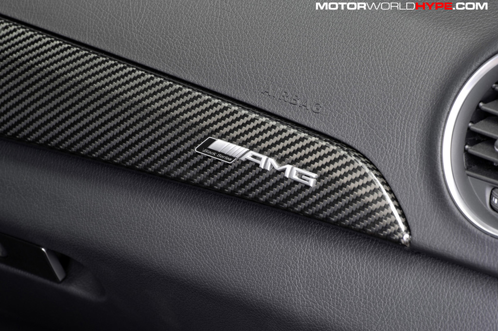 The AMG Aerodynamics package includes exterior winglets made from genuine carbon-fiber on the front valance. There is also a fixed carbon-fiber spoiler at the rear with adjustable aerofoil. Both components not only increase the downforce at the front and rear axle, they also optimize the vehicle’s aerodynamic balance.