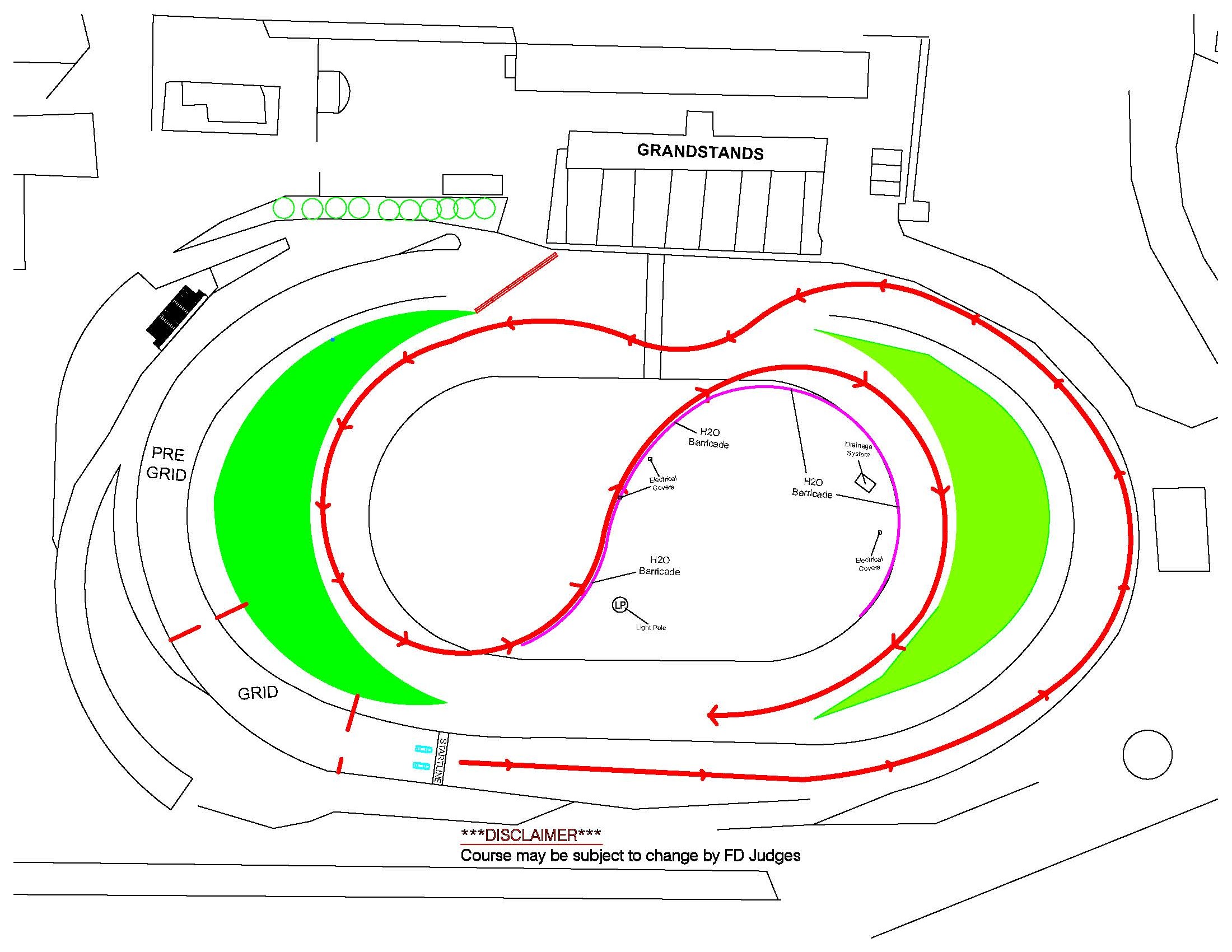 There were rumors of this for a while but today on the Formula Drift Blog it was confirmed that course configuration for Toyota Speedway AKA Irwindale AKA “The House Of Drift” will be changed. How? Well it looks like they are extending the course by including the inner bank opposite to the grid. This means drivers will not only have to conquer the big bank but BOTH inner bank turns as well while drifting completely across the track’s infield in the process.