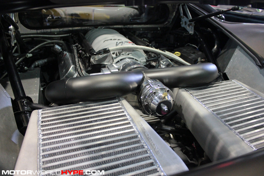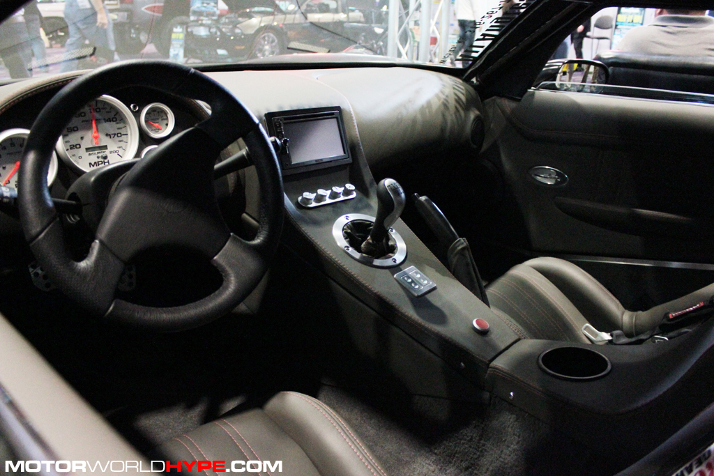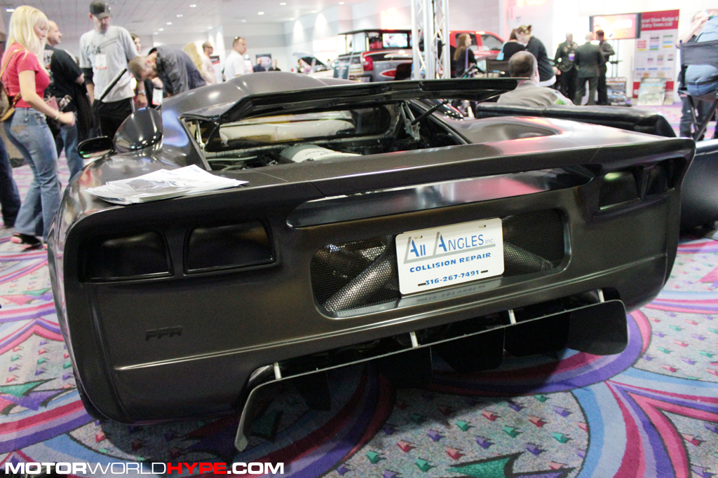 What? Another SEMA post? Yes. Another!  We have tons of cool stuff to show you from SEMA.  We are still going over the cool cars, we haven’t even got to the awesome products yet!  Anyway this post is all about an insane kit car from “Factory Five” known as the GTM.  Basically the GTM is a build-it-yourself supercar that is a modpodge of parts from GM and Porsche with some turbos thrown in and put together in a frame with a result that weighs only 2350lbs!  If you assemble this thing correctly it will beat an Enzo, Ford GT, Murcielago, Carerra GT, and even a open wheel Champ car to 60mph!
