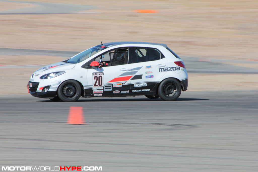 By the way if all of this is getting you exciting about going racing but you have no experience have no worries. I drove B-Spec versions of both the Mazda2 and Honda Fit and they are both incredibly easy to drive in race-trim and with an impromptu coaching session from GrandAM driver Charles Espenlaub I was able to pull a decent amount of speed from both chassis. I would recommend a three-day school at Skip Barber to get race theory and technique down followed by a few SCCA races at the club level and you will have the confidence and skill it takes to try your hand in one of the premiere series.