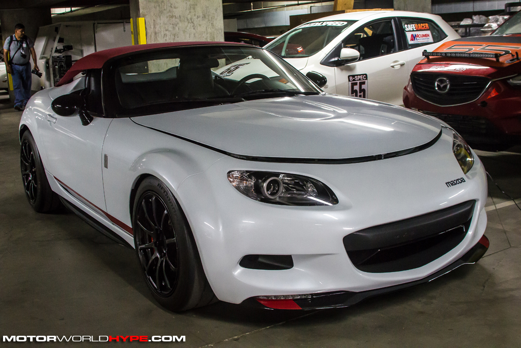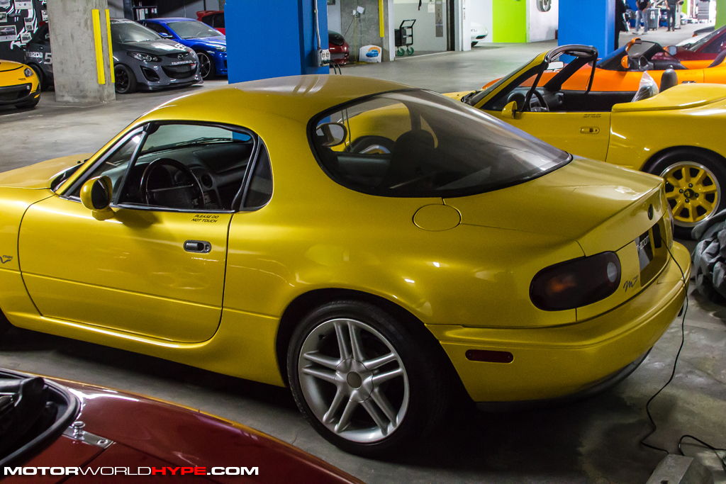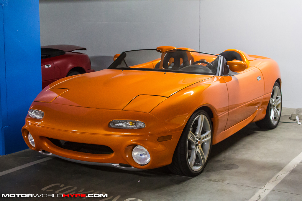 A short while ago a group of journalists (including myself) were invited to Mazda USA’s R&D headquarters in sunny industrial Irvine California get a look into their Mazdaspeed motorsports ladder and preview their upcoming season. We even got to meet a few of their young gun drivers but you’ll get more on that in a later post. What this post is about is what happened after the presentation. Once the presentation was over the group was taken into what the staff at Mazda R&D refers to as “The Basement”. Technically, its more of an underground parking garage but semantics aside, “The Basement” is pretty special. Why? Because it is the area in which several historically significant Mazda race cars, production cars, and concept cars are kept. Want to see a 4-Rotor Le Mans race car? There are two of them in the basement. How about a super rare Miata coupe? Not hard top but a true coupe. Yes, Virginia, it does exist. There were also vintage race cars, and other show room stock rare production cars like the short lived all wheel drive turbo-charged 323 GTX hatchback.