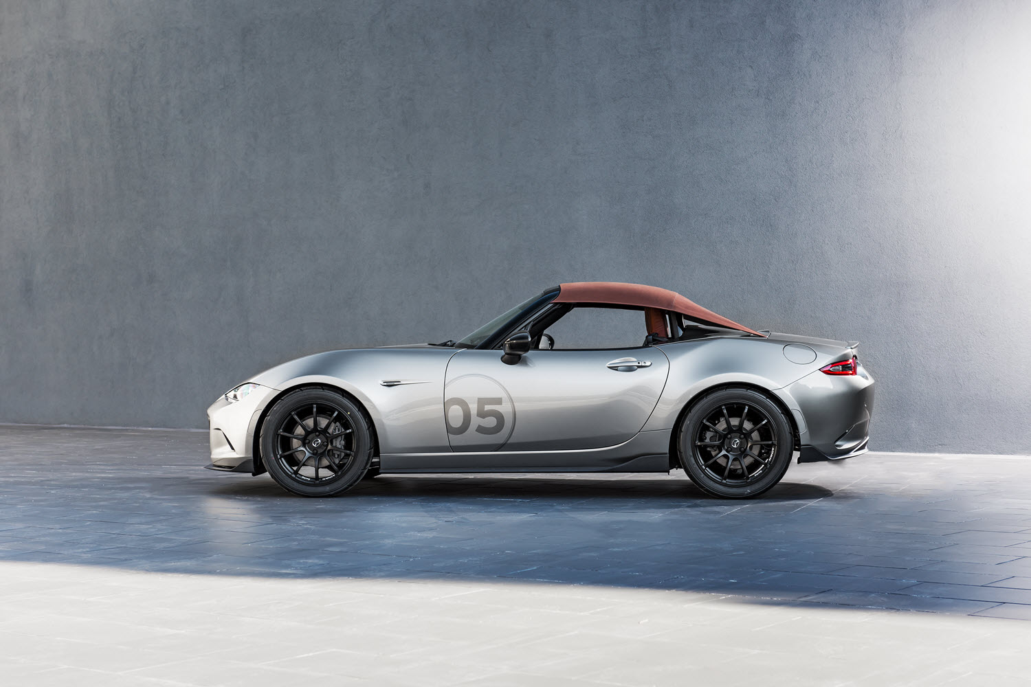 Designers drew inspiration from vintage roadsters. The MX-5 Spyder features a bikini top, Mercury Silver exterior, carbon fibre aero kit, grille intake, lightweight 17-inch Yokohama ADVAN Racing RS II wheels and a Spinneybeck PRIMA natural full-grain leather interior. The MX-5 Speedster, meanwhile, pares the roadster back to the bare essentials – it even has a deflector in place of the windscreen – for an old school wind-in-the-hair sports car experience. Mazda took its weight-cutting passion to extremes with for example carbon fibre doors and seats as well as custom 16-inch RAYS 57 Extreme Gram Lights wheels. The Speedster tips the scales at only 943kg, and is also 30mm lower than the production MX-5 thanks to an adjustable coilover suspension.