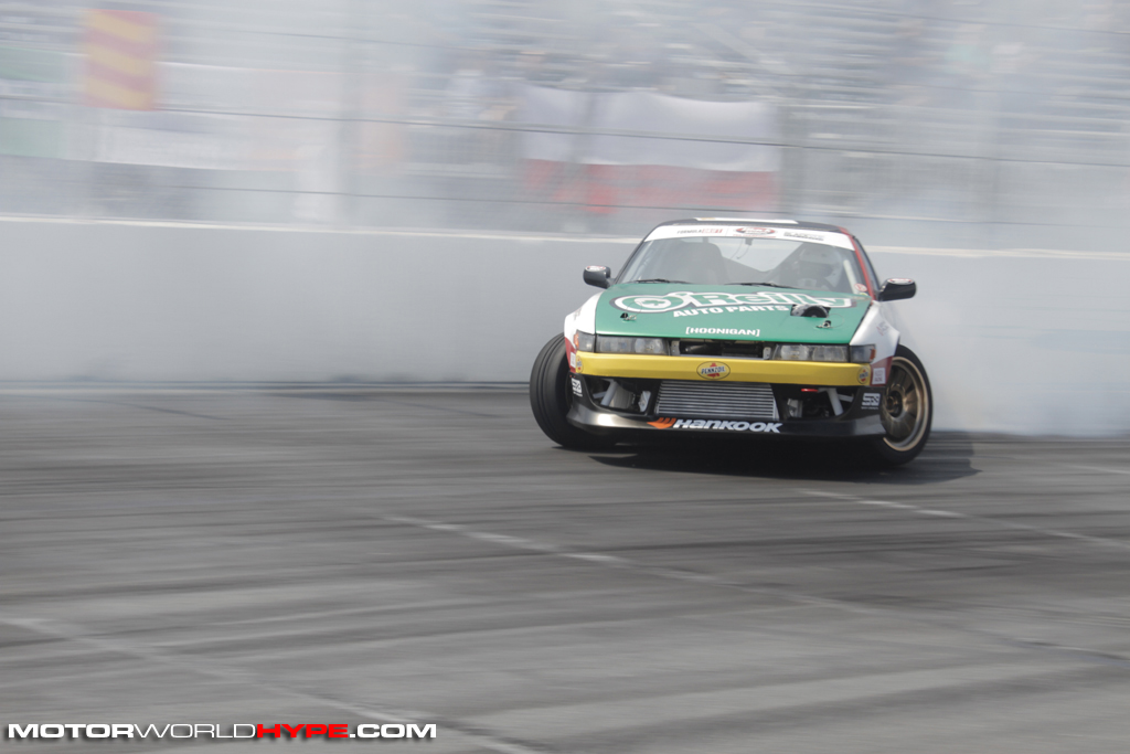 However, despite his absence from Formula Drift, Deane has been absolutely killing it overseas, winning no less than 10 championships between two different drifting series before coming back across the pond to give Formula Drift another shot. Also, just like in 2010, Deane was behind the wheel of a Nissan S15 with Falken Tire backing but with title sponsorship from Worthouse, a roofing company.