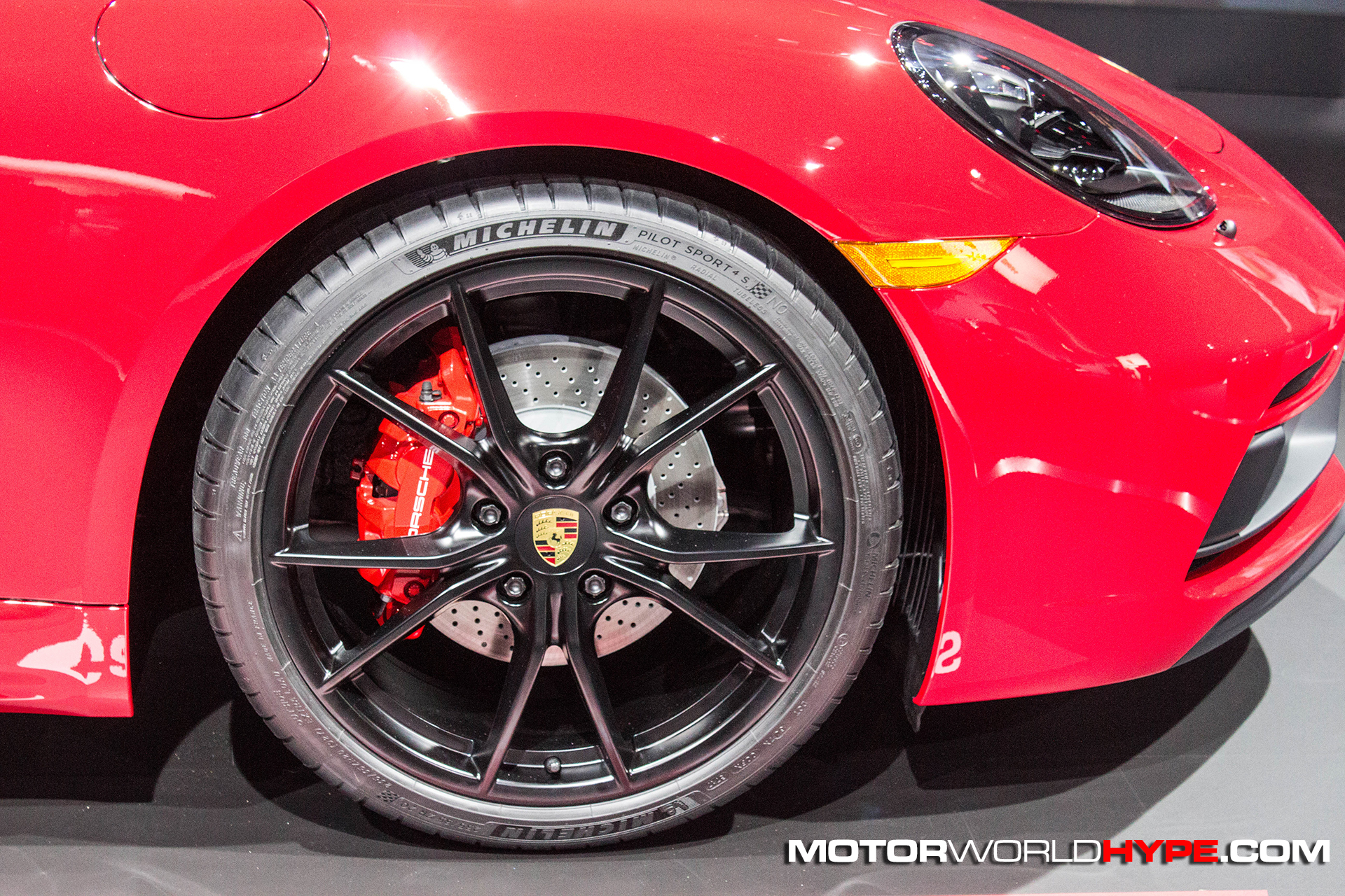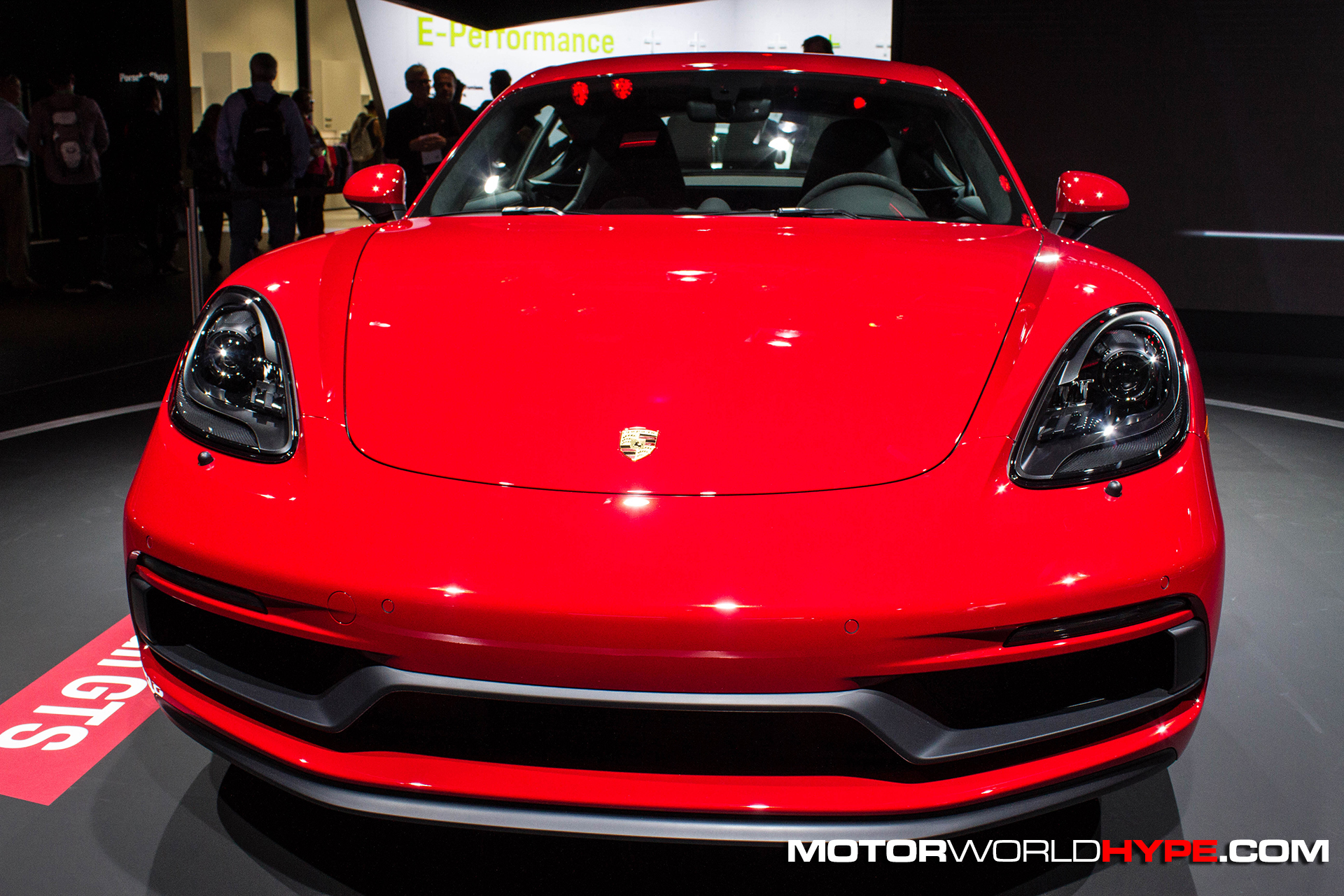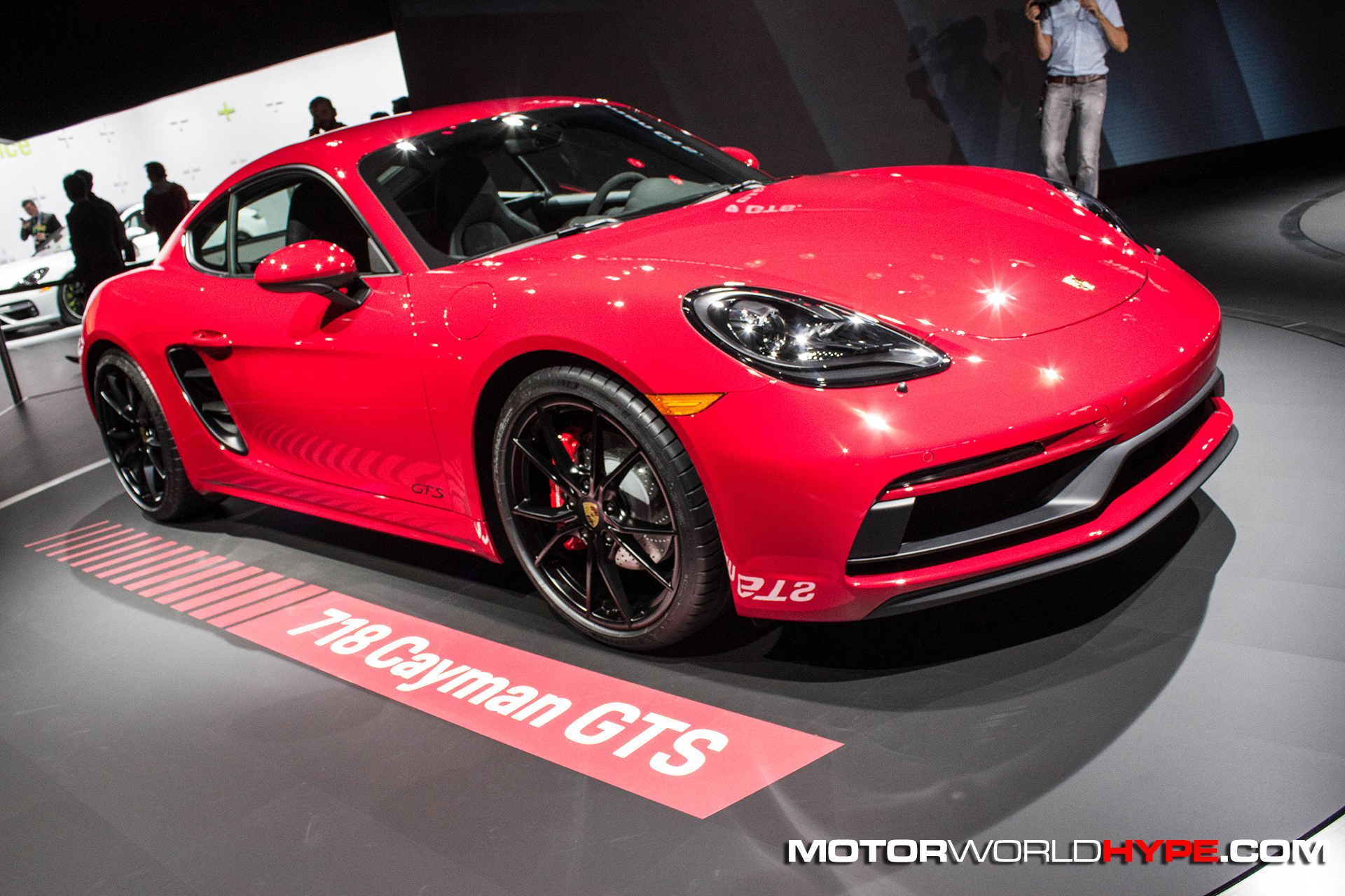 Yes, Porsche does in fact listen to their fans.  The first car revealed at the swanky Porsche exhibit is the 718 Cayman GTS.  As you may have guessed, the GTS picks up where the 718 S leaves off, adding more power and torque with the help of a turbocharger.
