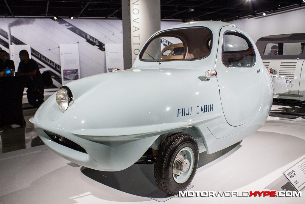 This “car” was one of the most crowded pieces of the exhibit. The Fuji Cabin is more of a enclosed scooter than it is a car but either way, its cute spaceship-like design makes it hard not to pay attention to. This little three wheeled vehicle is powered by a single cylinder engine that made just 5.5 horsepower. This car was designed by Ryuichi Tomiya, the same designer of the “Flying Feather”. This car has a monocoque fiberglass chassis and is extremely rare. Only 85 of these cars were built.