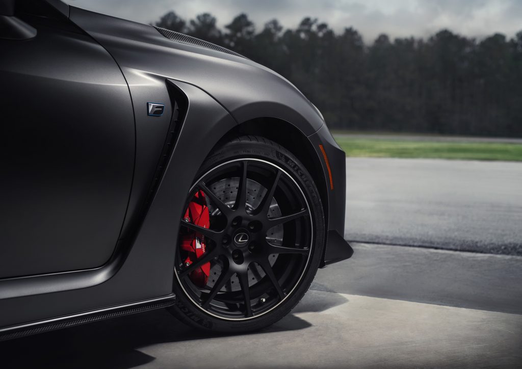 Like the standard model, weight reduction was a key area of focus for the Track Edition. Preliminary estimates put the total reduction at 176 pounds compared to the previous RC F, but more importantly, the engineers focused on cutting weight that yields the most significant dynamic improvements. This led to keying in on unsprung weight since any weight that can be removed from the mass not supported by the suspension pays huge dividends in handling and steering feel.