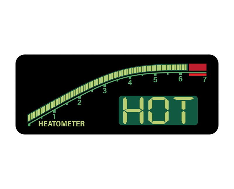According to the 80s-tastic tachometer-inspired “heatometer”, the Zonker redlines as the hottest sauce available at a 7. The MK2 sauce on the other hand is a bit more mild and comes in at a 3.5.